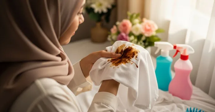 Kesan coklat perlu dirawat dengan berhati-hati agar tidak meninggalkan tompokan kekal, terutamanya pada fabrik cerah atau lembut.
